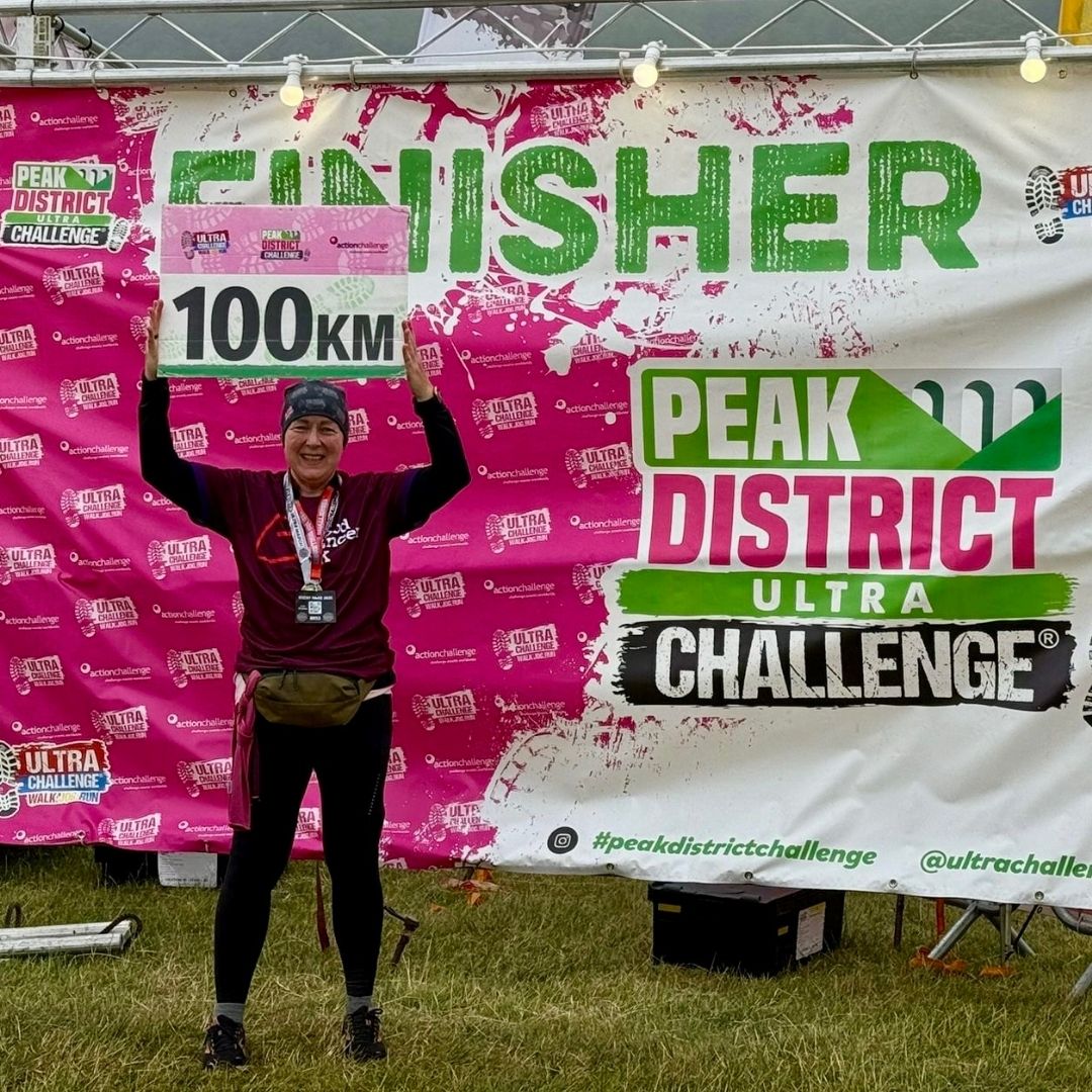 Fast forward to June 2025, less than two years after her operation, and Pam achieved something incredible: she successfully completed the Peak District Ultra Challenge, a 100km endurance event.
